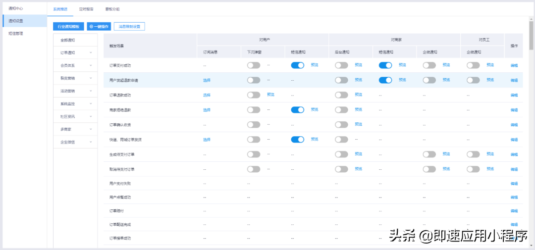 企業(yè)只需在后臺(tái)開啟消息通知,還可以自由設(shè)置需推送的消息。